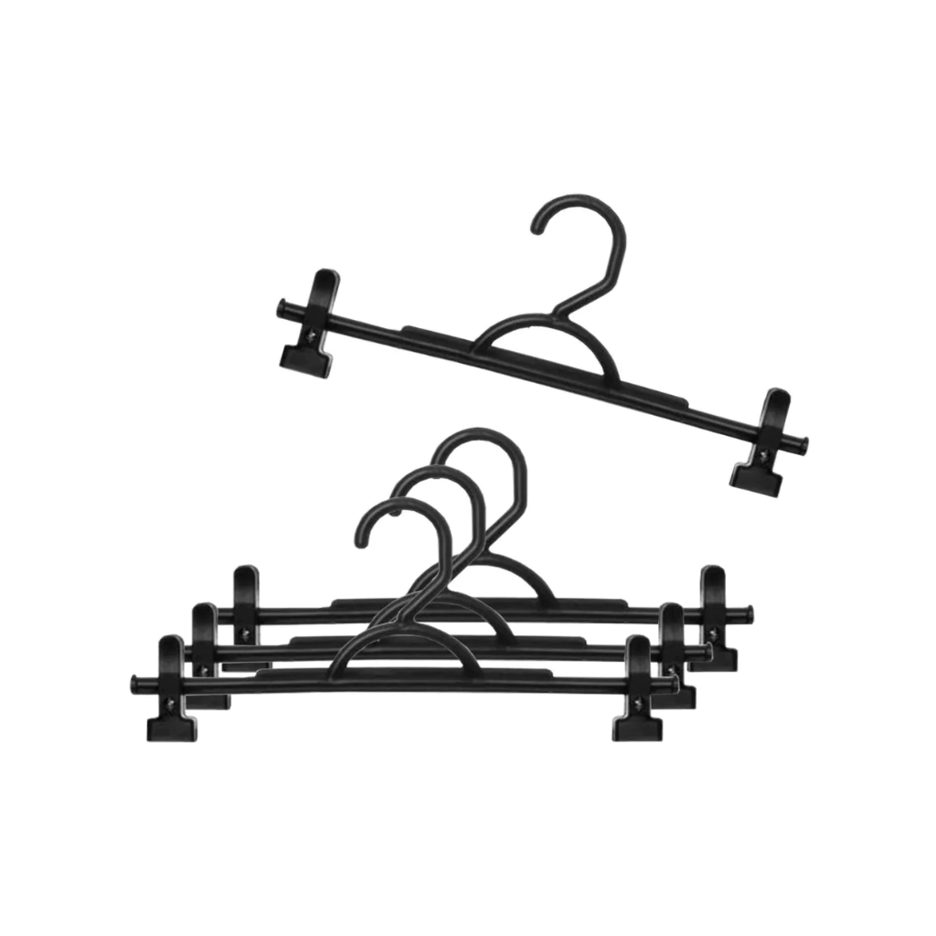 Kit com 10 Cabides para Saia, Calça e Bermuda + 20 Presilhas - PRETO
