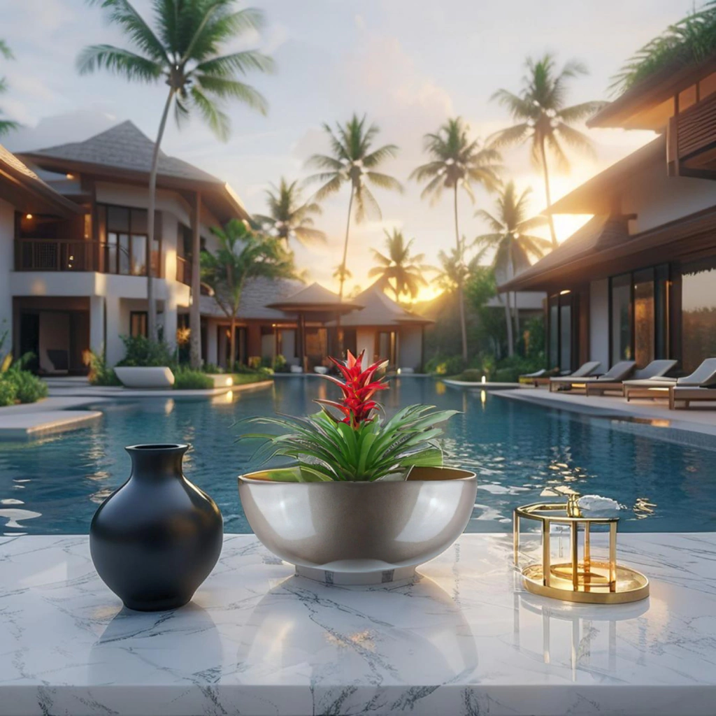 ? Características Premium: o Pintura automotiva ultra resistente (não descasca) o Acabamento vitrificado brilhante e durável o Design vietnamita sofisticado e atemporal o Ultra resistente à água e intempéries o Material leve e prático para manuseio o Fácil limpeza e manutenção