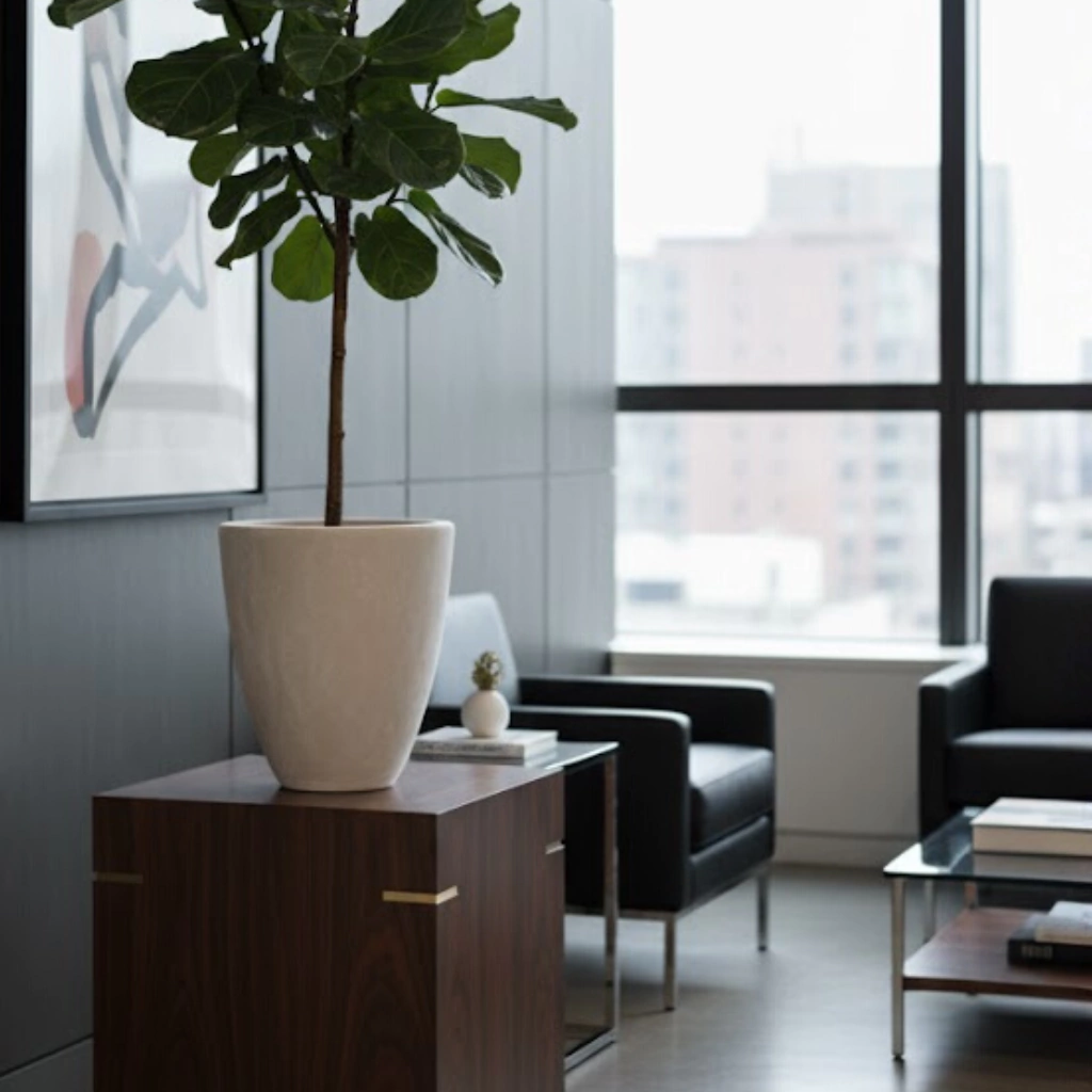 Fabricado em resina composta de alta performance, o vaso oferece resistência, leveza e durabilidade superiores. O tom bege aveludado adiciona uma sensação de aconchego e elegância, integrando-se perfeitamente a ambientes claros, neutros ou com decoração natural.